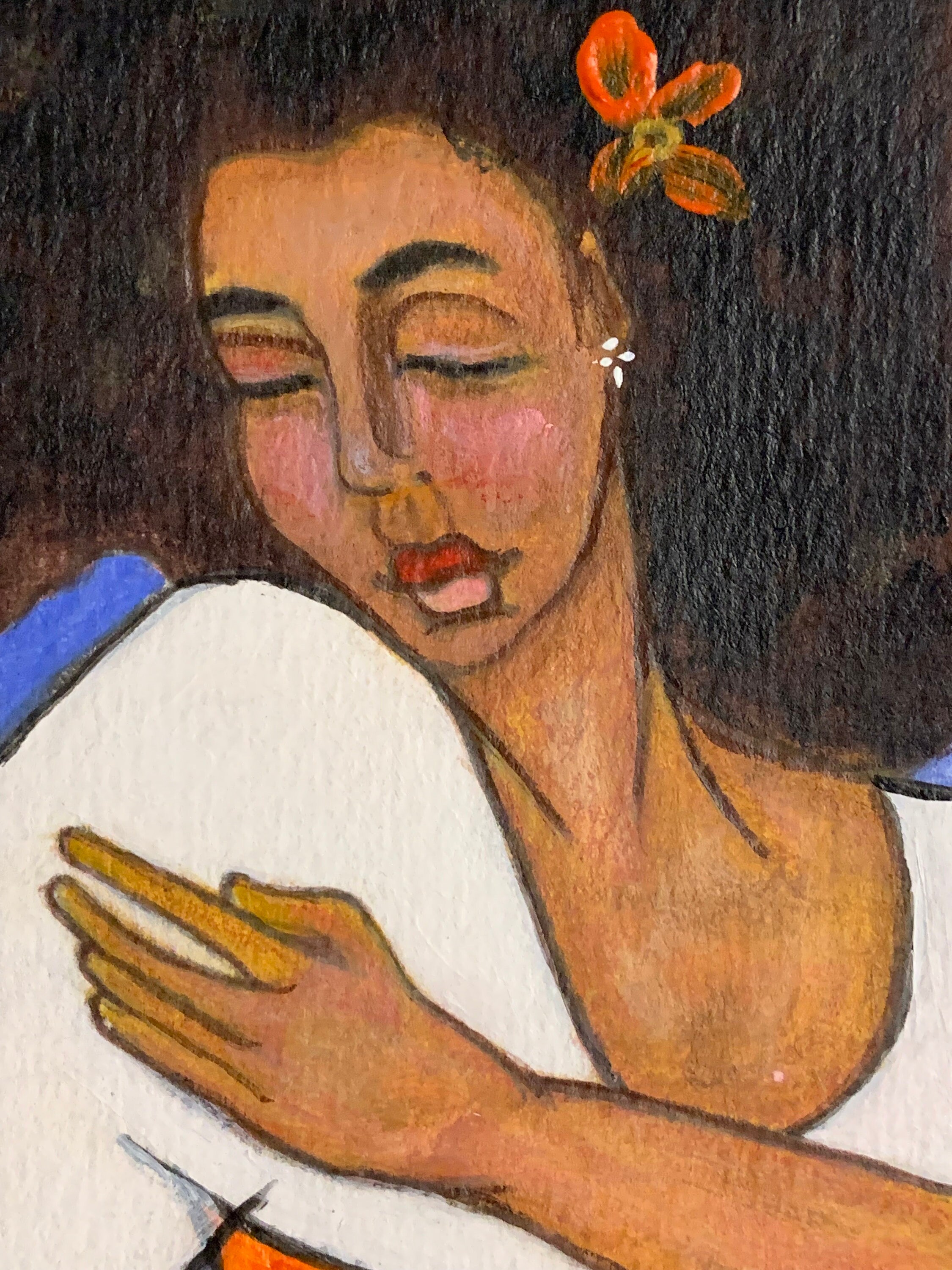 This is a Unique!, Fanciful & Vibrant Original abstract portrait painting of a natural hair woman on a 4" x 6" Fine Quality Artists Card. This textured, Acid-Free artists card is made from 140 lb. cold press watercolor paper, it comes unframed.