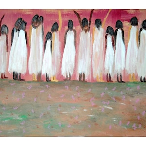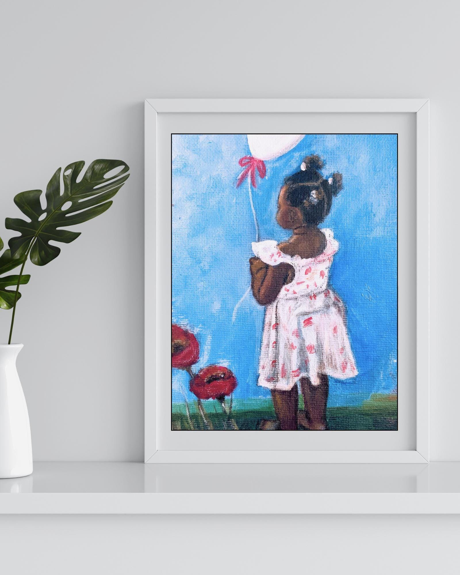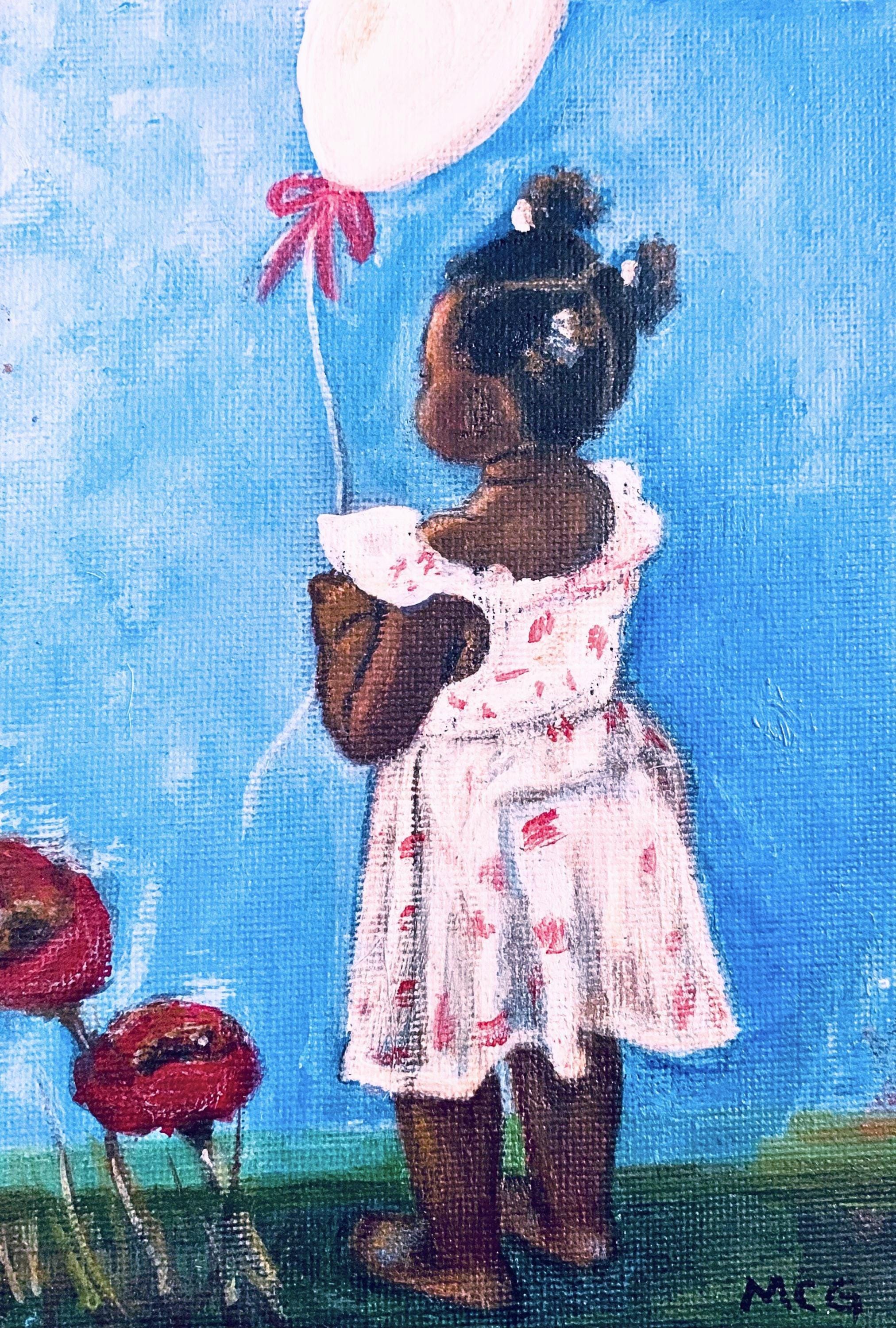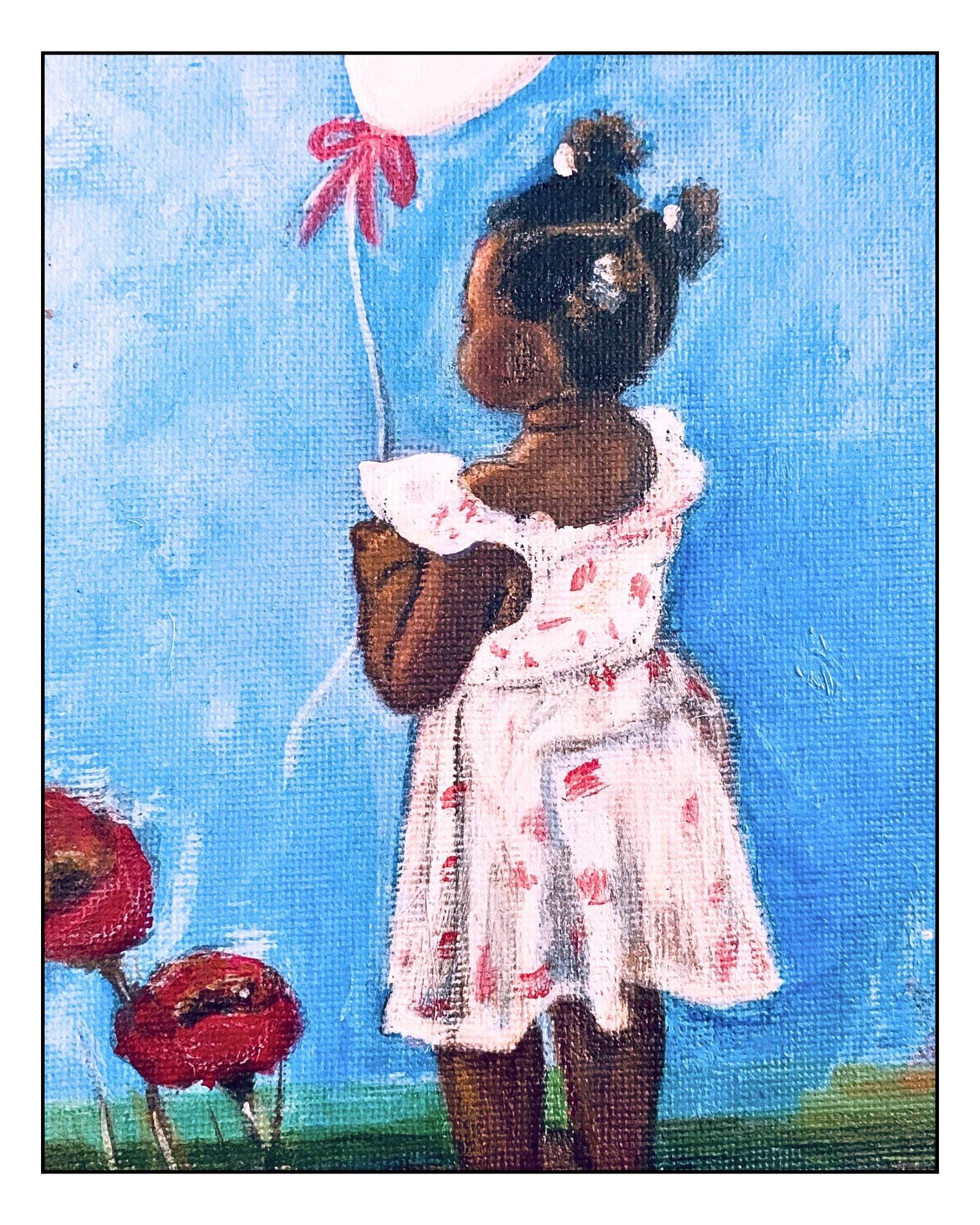 This is a Folksy & Vibrant! print of one of my original acrylic paintings on canvas, Little Girl with balloon. It is printed on an 8.5”x11” Premium paper with a thin border and comes unframed. I use Brilliant High Quality archival inks and Glossy photo paper, so that your investment will make a lasting impression.