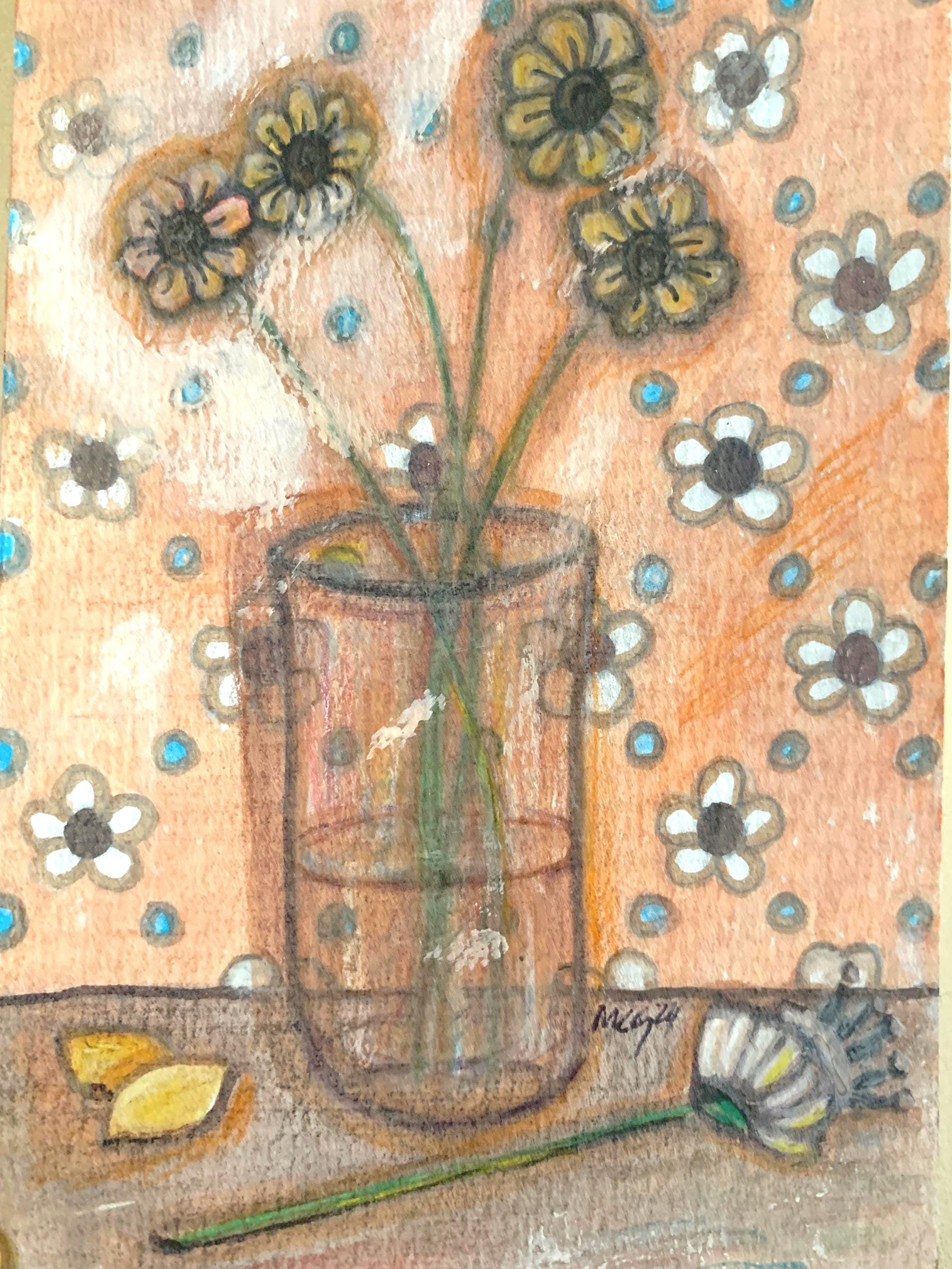 This is a Folksy Original still-life acrylic painting on 4" x 6" Watercolor Card paper. Write a message on the back and give it to someone special. Or frame it and hang it on your kitchen wall and wake up to a gorgeous piece with your morning cup of coffee or tea.