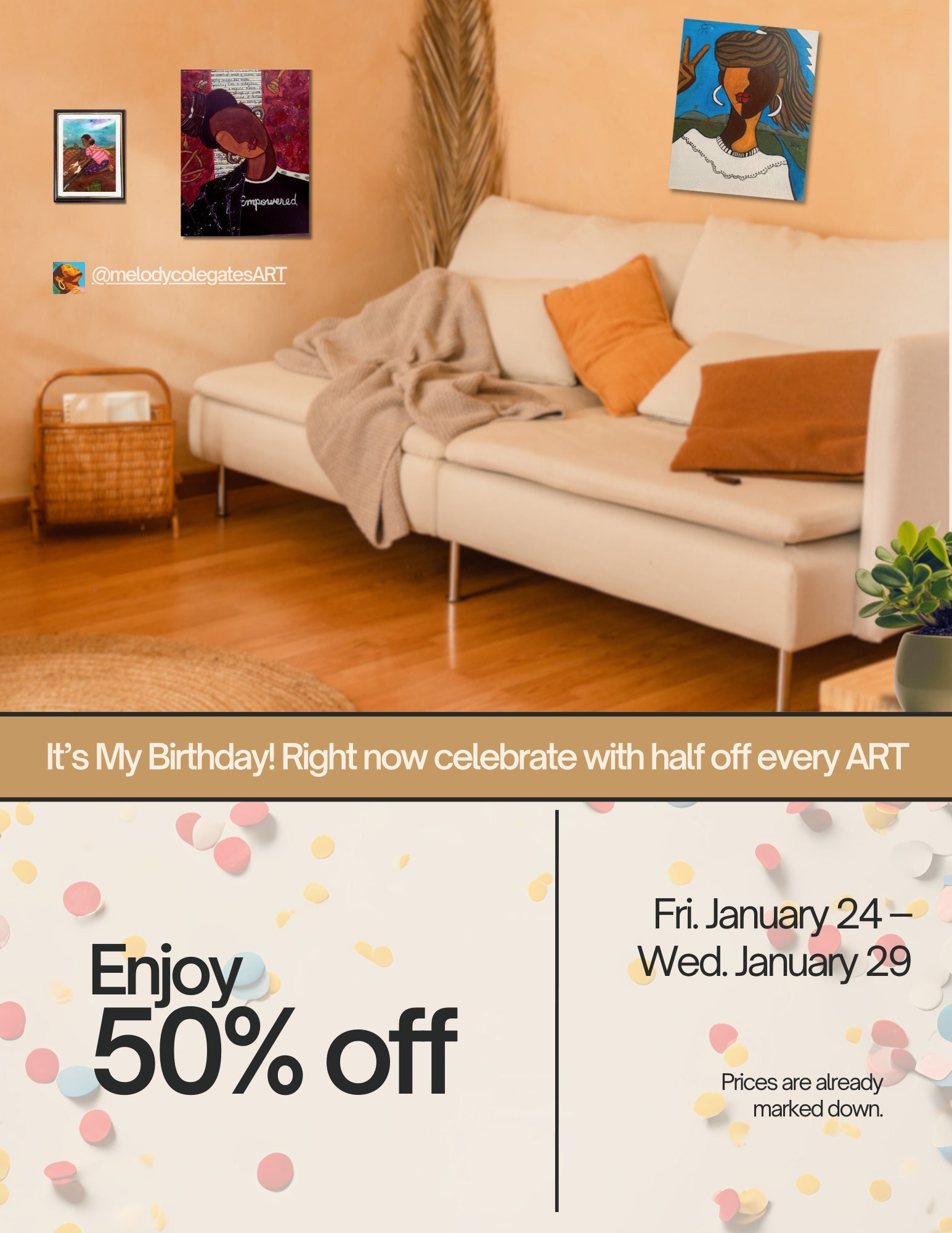 #HappyBirthdaytoMe #ArtSale #50%off #EtsyShop #artistsblog #inthestudio